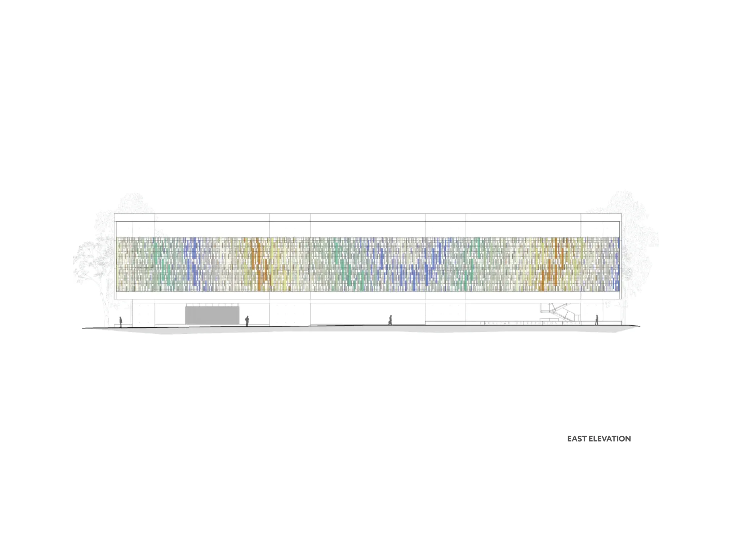 El diseño incorpora una escultura-quiebrasol monumental en la fachada este, creada por la artista Nayda Collazo Lloréns. Esta estructura de aluminio perforado de colores no solo ofrece protección solar y contra huracanes, sino que también refuerza la identidad del edificio. Las paredes de concreto con bajorelieves y aberturas estratégicas permiten la entrada de luz natural y brisa, promoviendo la ventilación cruzada y creando un efecto chimenea que mejora la eficiencia energética del edificio.